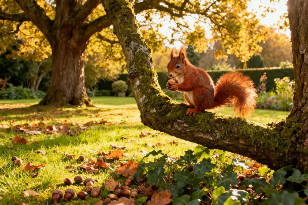 Un écureuil ne se déplace presque jamais au sol. Il préfère avancer de branche en branche, comme s’il suivait une route aérienne. Cela signifie que votre jardin est relié à d’autres zones arborées ou qu’il possède des arbres assez hauts et assez proches comme des hêtres, chênes ou noisetiers.